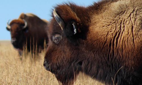 Take a ride on the wild side with a buffalo tour! Get up close and personal with one of the most magnificent animals ever created. During the spring you will have a chance to see the buffalo cows with their new calves. That time of the year the mature bulls are often away from the cows hanging out together. By July & August breeding season will be underway. Their friendships will have turned to feuding & some of the bulls will be growling like African lions and pacing rapidly through the cows. Occasionally there will be a challenge from a bull hoping to take control of the herd as you observe from the sidelines. So hope on a flatbed trailer and let Duff’s Buffalo Ranch give you an amazing tour!